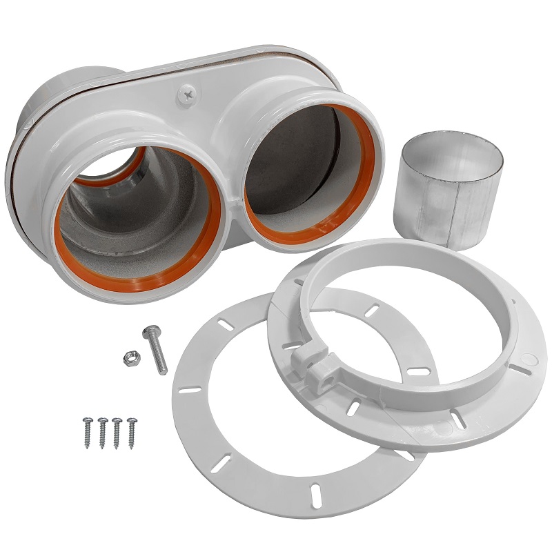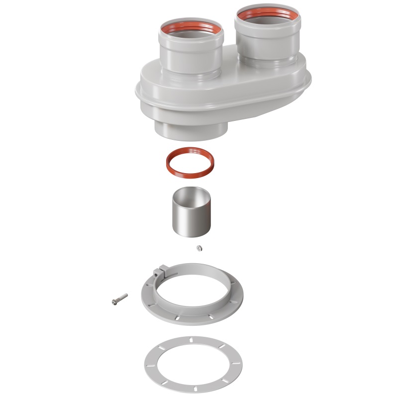 Адаптер моноблочный для перехода с коаксиальной системы 60/100 на раздельную ситему D80/80. Подключение через фланец (Ferroli, Girus фланец+втулка).