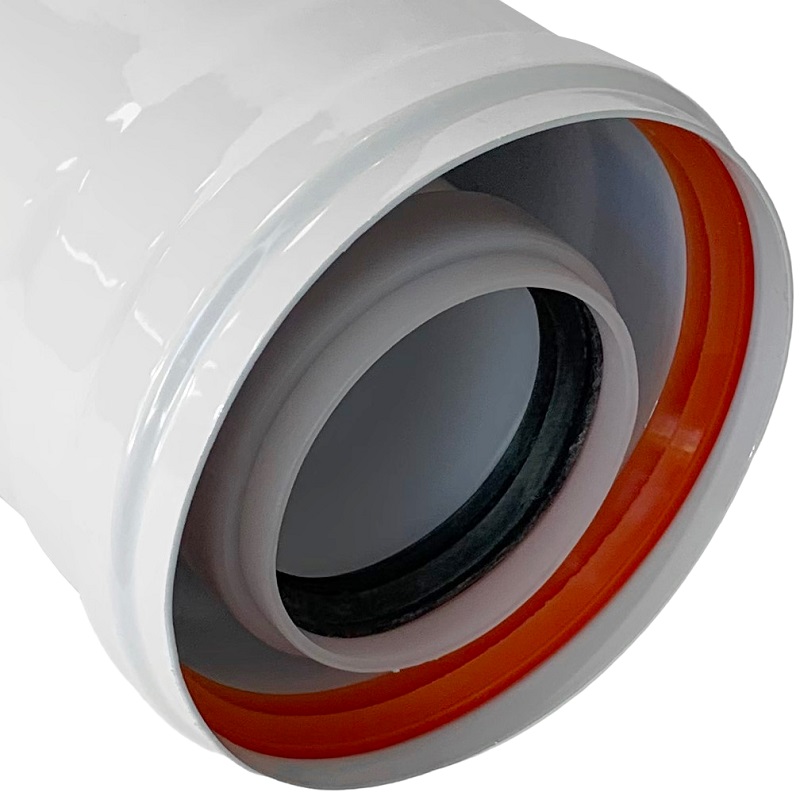 Удлинитель применяется для установки раздельной системы дымохода, для конденсационных котлов. Он служит для удлинения трубы дымохода, по которой происходит забор воздуха в котел, или трубы, по которой отводятся продукты сгорания.