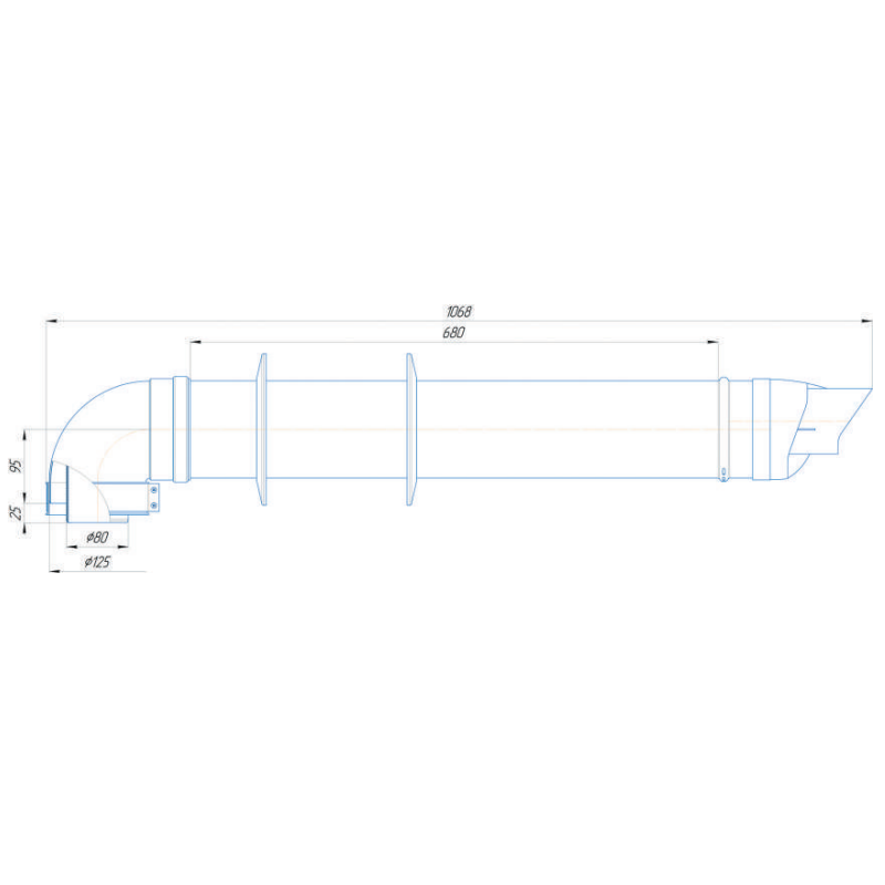 Дымоход в сборе WAAG DN80/125 x L0,68м, АНТИЛЕД, (для конденс.котла)