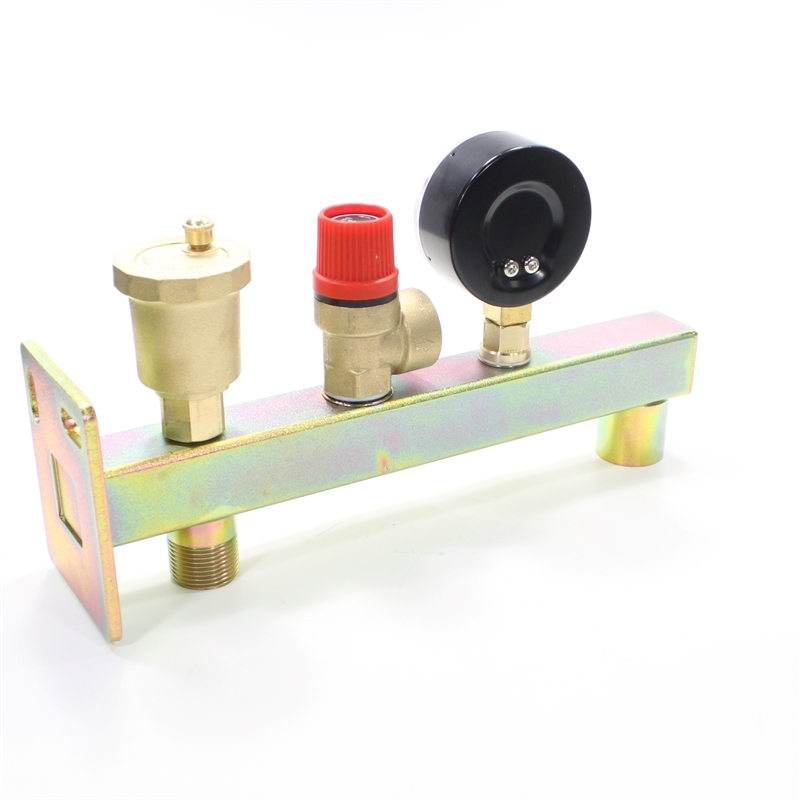 Группа безопасности предназначена для автономных систем водяного отопления и горячего водоснабжения. Группа безопасности комплектуется автоматическим поплавковым воздухоотводчиком; отсечным клапаном для воздухоотводчика; предохранительным клапаном и манометром индикатором, что обеспечивает выполнение следующих функций: