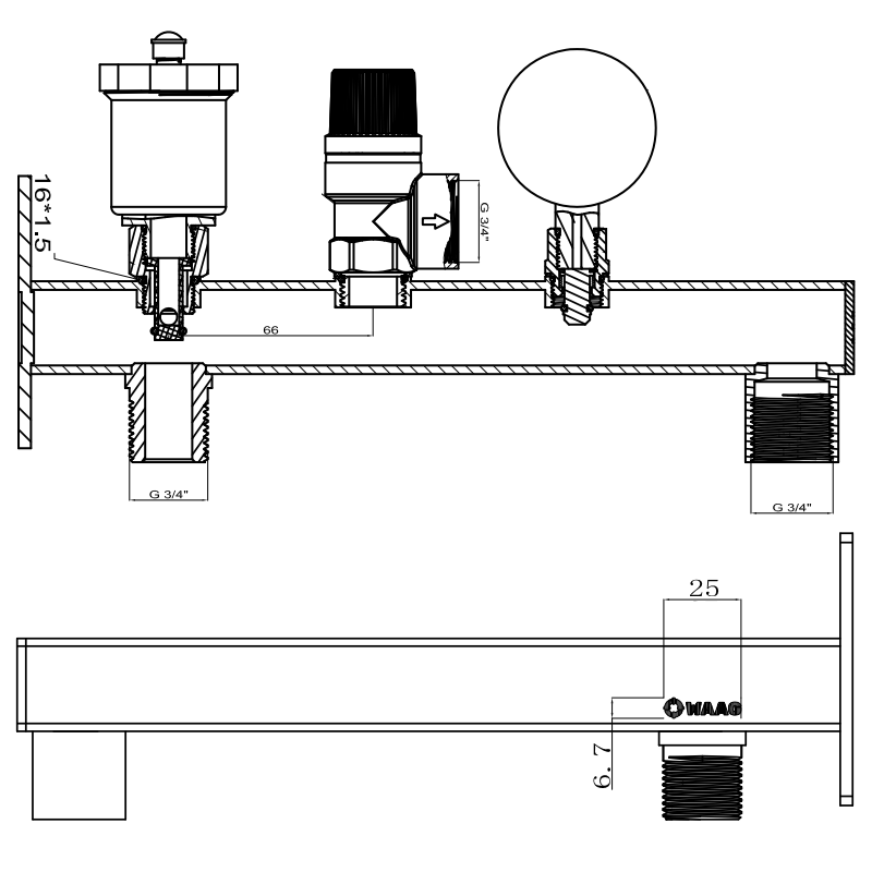Группа безопасности 3/4", PN10, WAAG, латунь до 44 кВт.