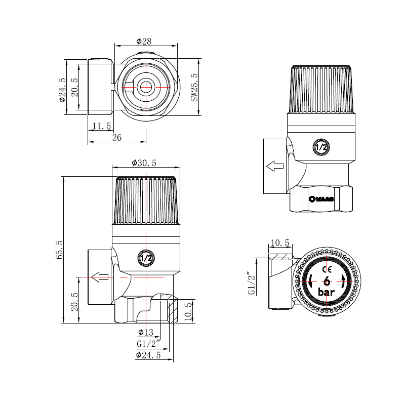 Клапан предохранительный нерегулируемый, c фиксированной заводской настройкой 6 бар. Обеспечивает защиту от превышения давления водогрейных котлов, бойлеров, сосудов под давлением, систем отопления, напорных трубопроводов сбросом рабочей среды (в качестве рабочей среды может использоваться вода, растворы этиленгликоля или пропиленгликоля и другие жидкости, нейтральные по отношению к материалам клапана) в окружающую среду либо дренажный трубопровод. Максимальная рабочая температура – 115 °С. Предусмотрена возможность ручного открытия клапана предохранительного для проверки работоспособности, профилактики залипания золотниковой обоймы. Резьба присоединения – внутренняя, 1/2".