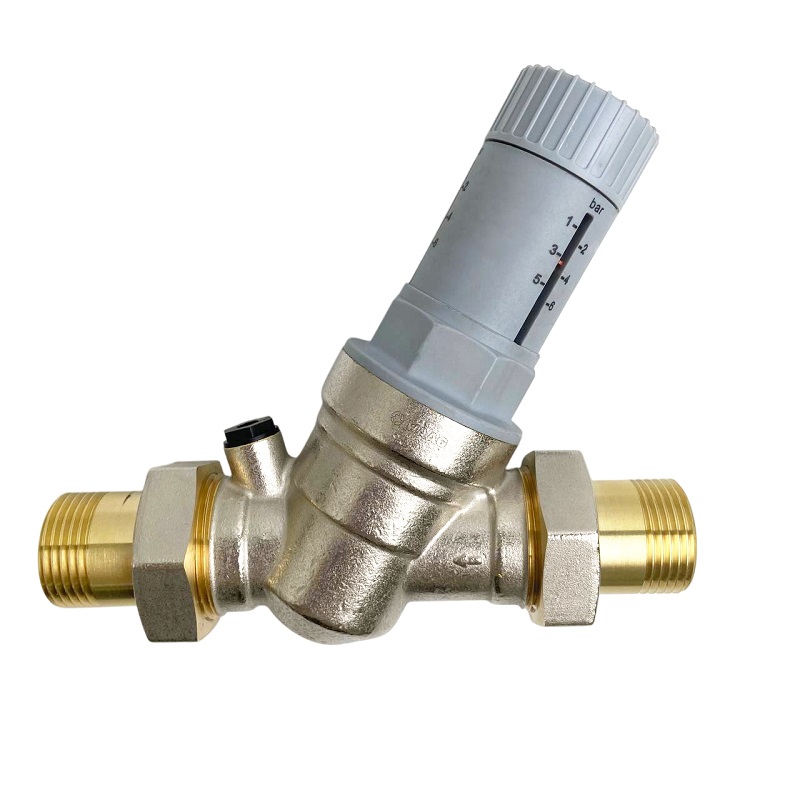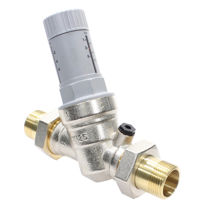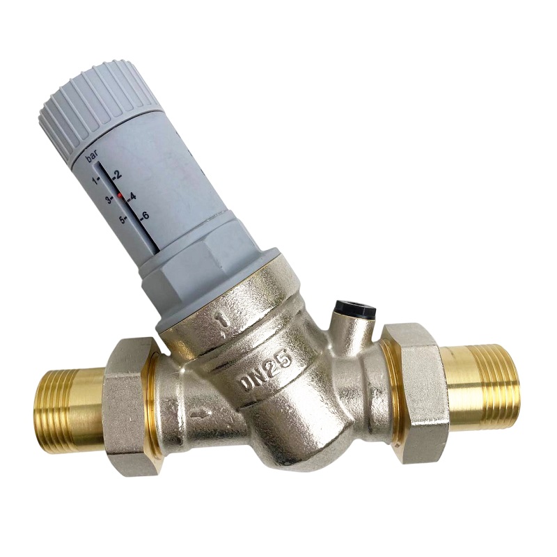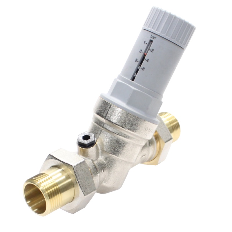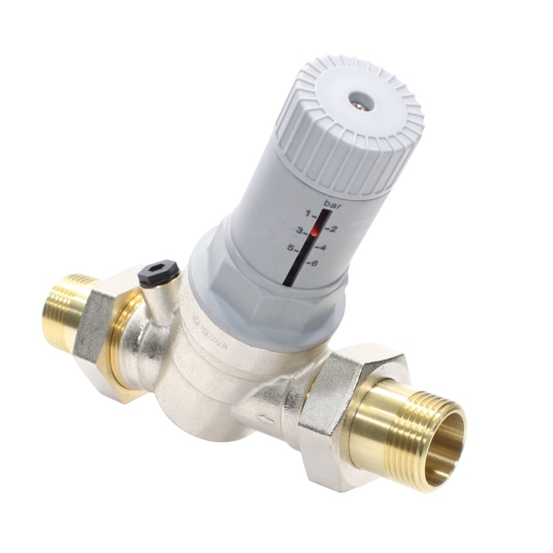 Патентованный редукционный мембранный клапан с оптимизированным седлом, регулятором выходного давления и шкалой для визуального контроля выходного давления. В комплекте с разъемными резьбовыми соединениями. Корпус и колпачок из латуни. Встроенный фильтр грубой очистки (сеточка из нержавеющей стали). Пластмассовое седло клапана. Макс. давление на входе 25 бар. Диапазон регулирования давления на выходе от 1,5 до 6 бар. Может использоваться для воды, воздуха и нейтральных газов с температурой до 30 °C. Уровень шума менее 20 дБ.