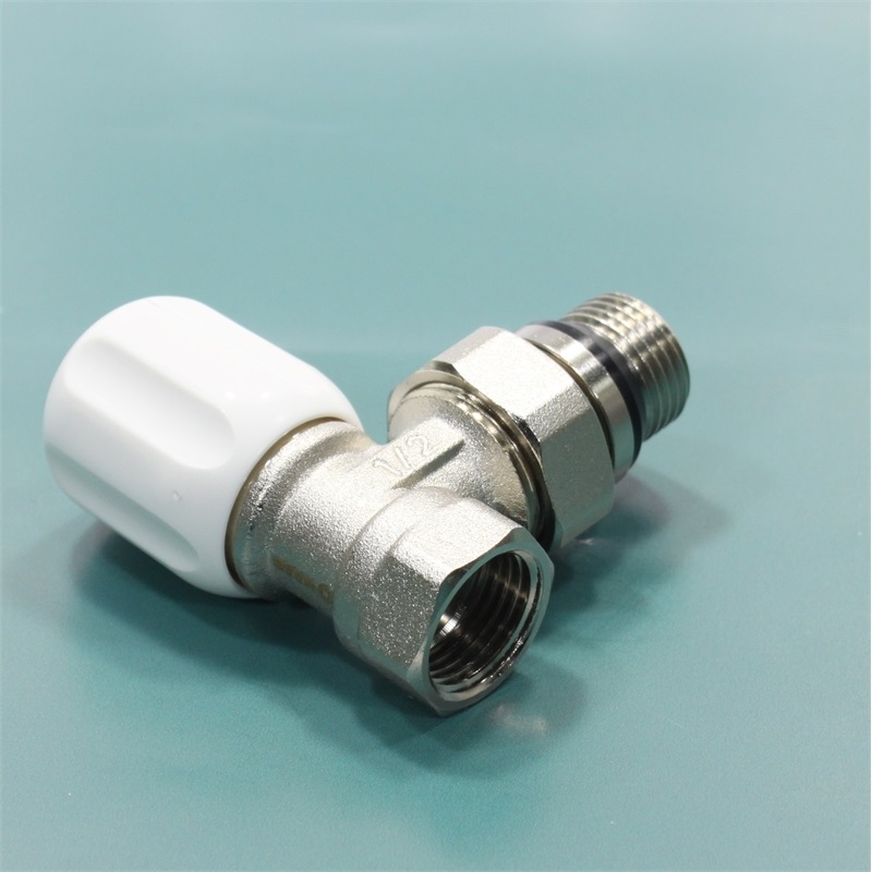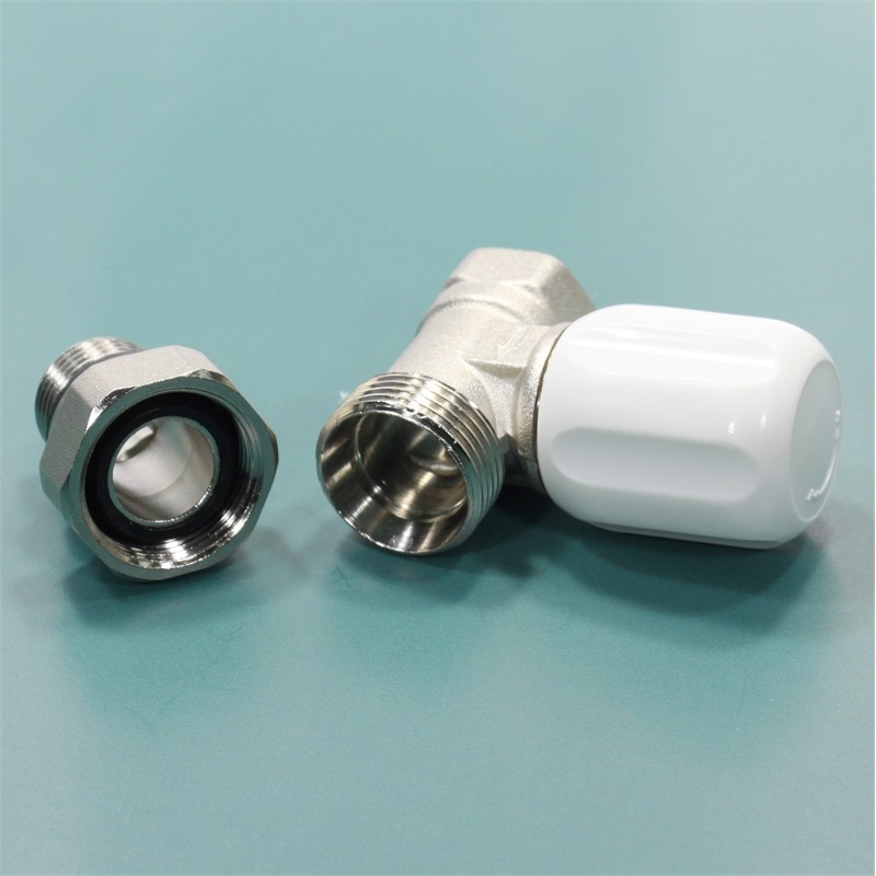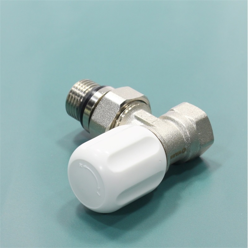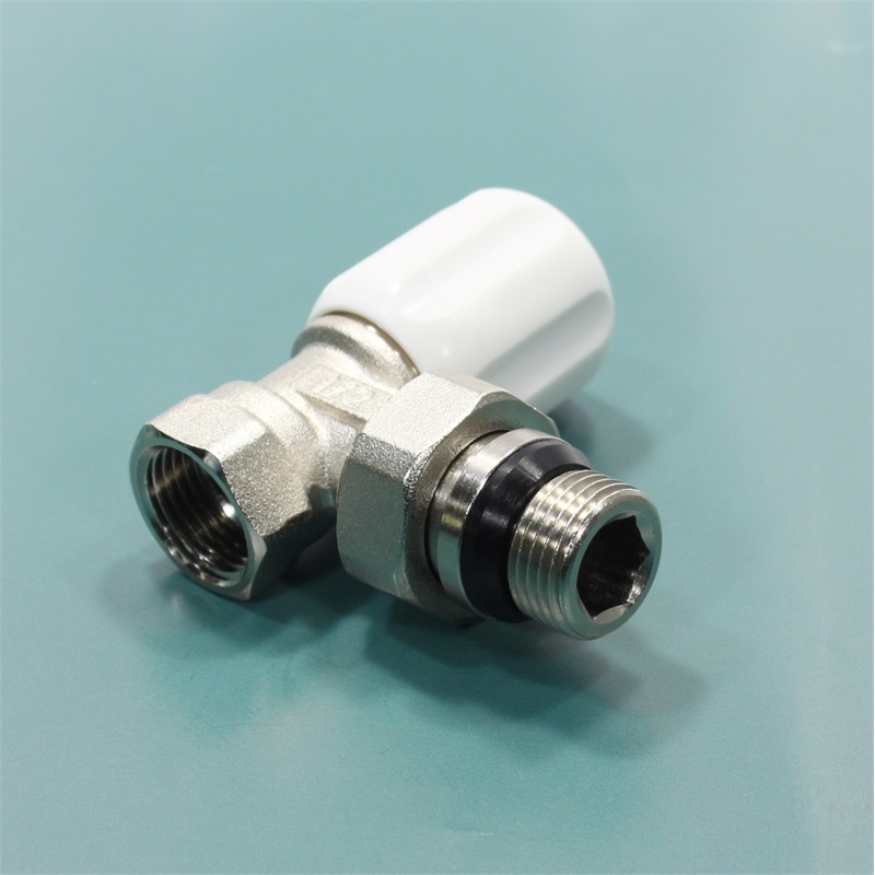 Угловой радиаторный клапан. Основное назначение – ручное плавное регулирование расхода теплоносителя через отопительный прибор. При замене регулировочной ручки на защитный колпачок может использоваться в качестве настроечного клапана. Наличие полусгона позволяет монтировать и демонтировать клапан без демонтажа трубопровода. Ремонтопригодный. Рабочая температура – до 110 °С, давление – до 10 бар. Резьба присоединений – внутренняя/наружная.