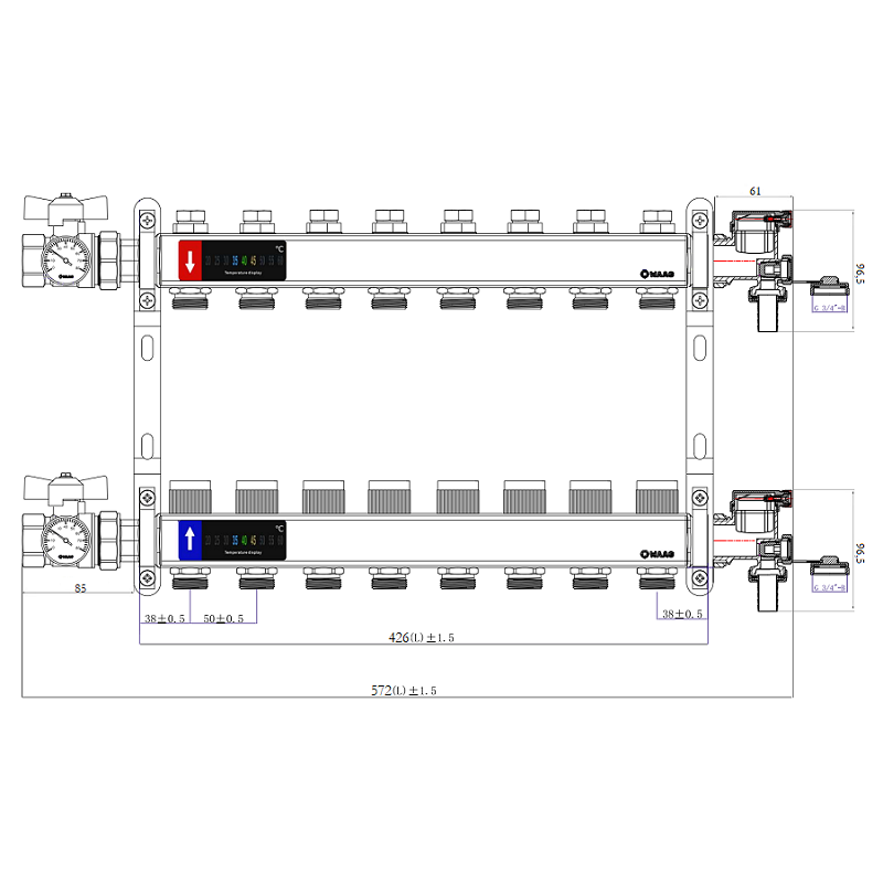 Выходы обратного коллектора блока оборудованы регулировочными клапанами с возможностью установки электротермических сервоприводов, подающего – настроечными микрометрическими клапанами.