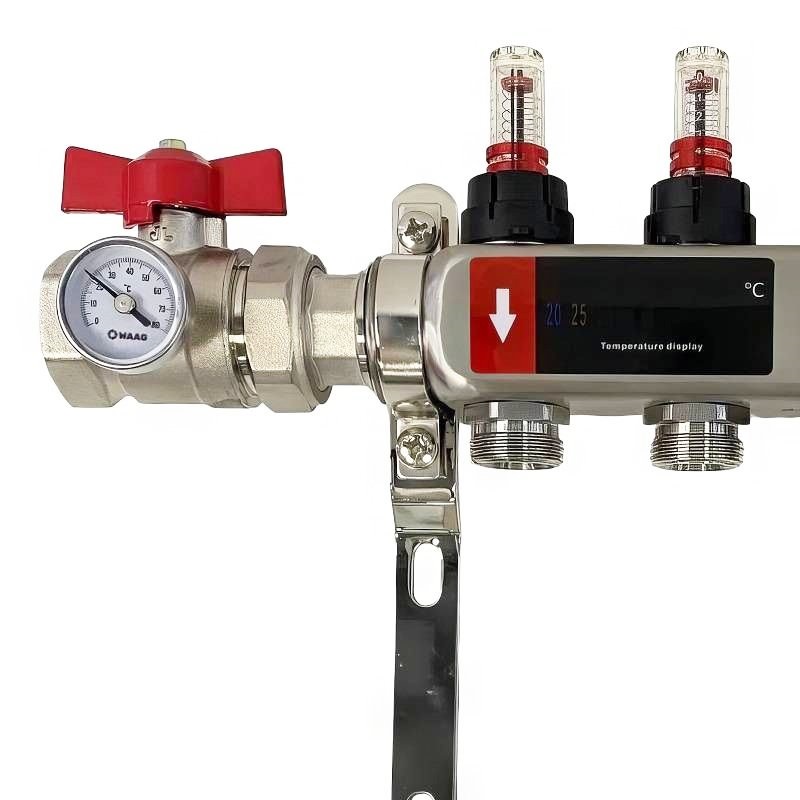 Выходы обратного коллектора блока оборудованы регулировочными клапанами с возможностью установки электротермических сервоприводов, подающего – настроечными микрометрическими клапанами.