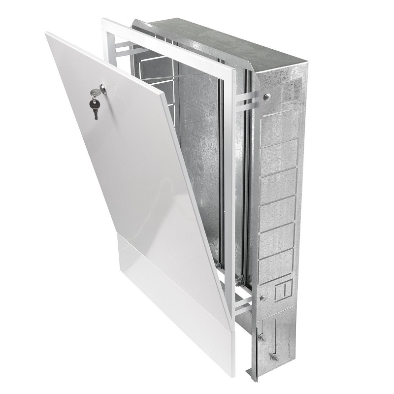 - В боковых стенках корпуса шкафа выполнена перфорация, сегменты которой удаляются в любом удобном месте для подсоединения трубопроводов;