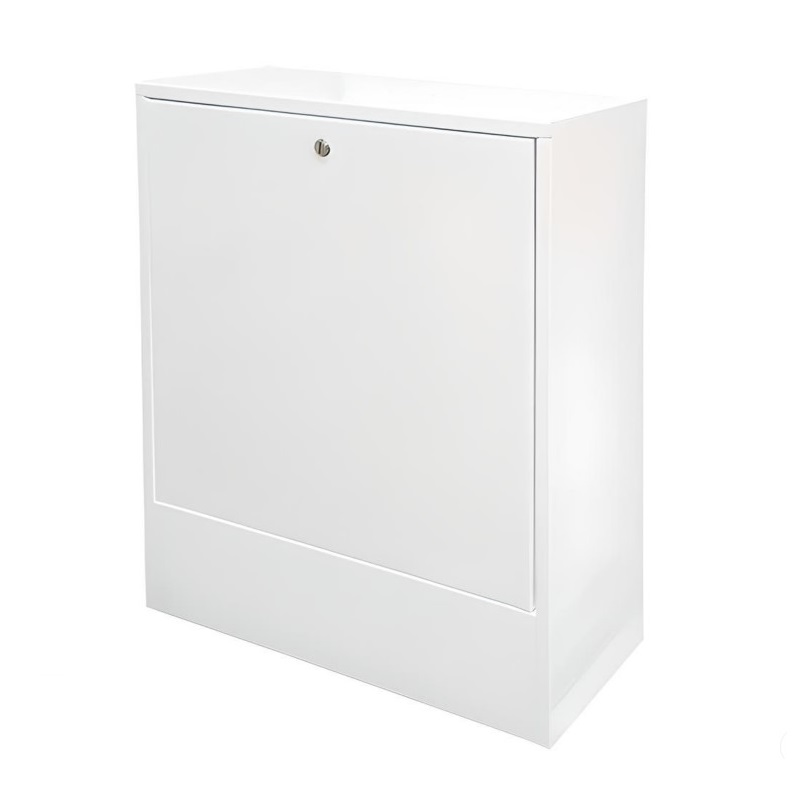 - Отличительной особенностью данного шкафа является съемная задняя стенка с направляющими. Крепясь прямиком на стену, она обеспечивает удобство монтажа коллекторных узлов, в то время как корпус шкафа остается нетронутым и устанавливается в последнюю очередь, закрывая уже готовую конструкцию;