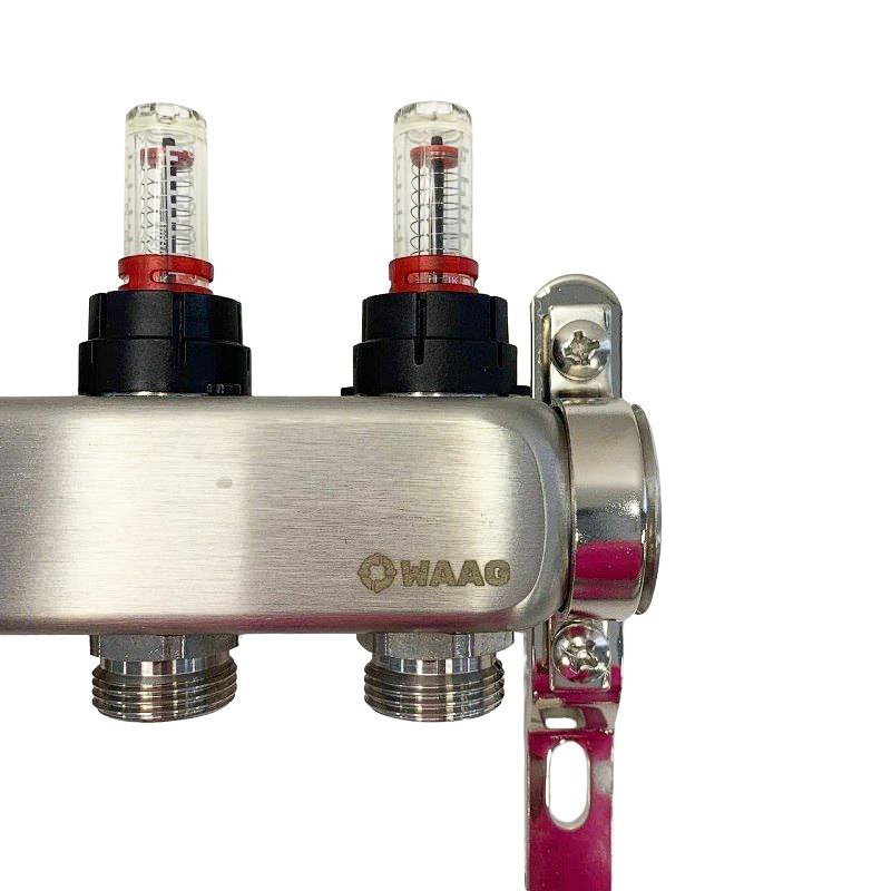Коллектор WAAG 589 1"х3/4", 5вых., c клапанами, с расходомерами, сталь нерж.