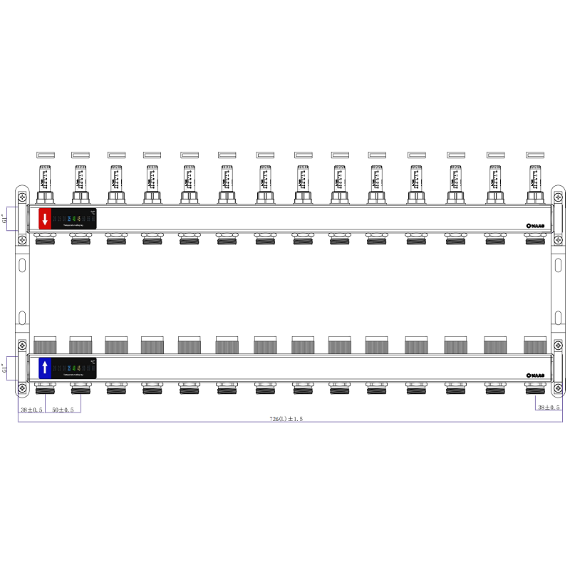 Выходы обратного коллектора блока оборудованы регулировочными клапанами с возможностью установки электротермических сервоприводов, подающего – настроечными клапанами с расходомерами (ротаметрами).