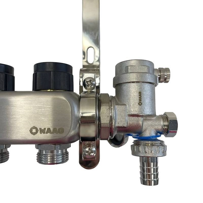 Коллектор WAAG 589.F 1"х3/4", 15вых., c клапанами, с расходомерами, сталь нерж., в сборе