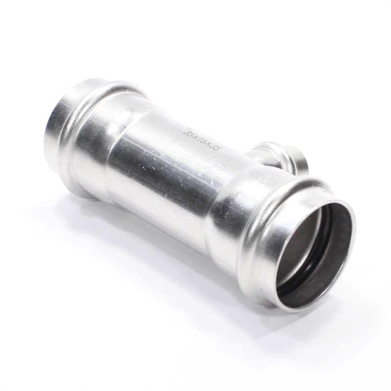 Трехраструбный пресс-тройник из нержавеющей стали обеспечивает соединение трех тонкостенных стальных труб систем водоснабжения, отопления, иных инженерных и технологических установок с рабочей температурой до 120 °С и давлением до 16 бар.
