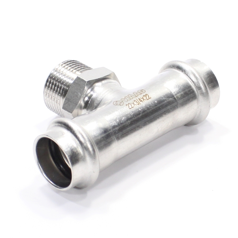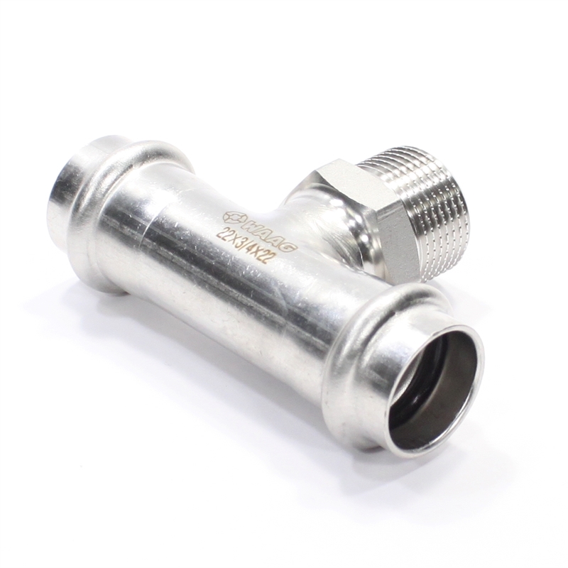 Тройник 22-3/4"-22, WAAG Heavy Inox, пресс-резьба, нар., сталь нержавеющая