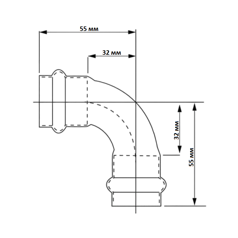 Двухраструбный пресс-угольник из нержавеющей стали обеспечивает соединение под углом 90° тонкостенных стальных труб систем водоснабжения, отопления, иных инженерных и технологических установок с рабочей температурой до 120 °С и давлением до 16 бар.