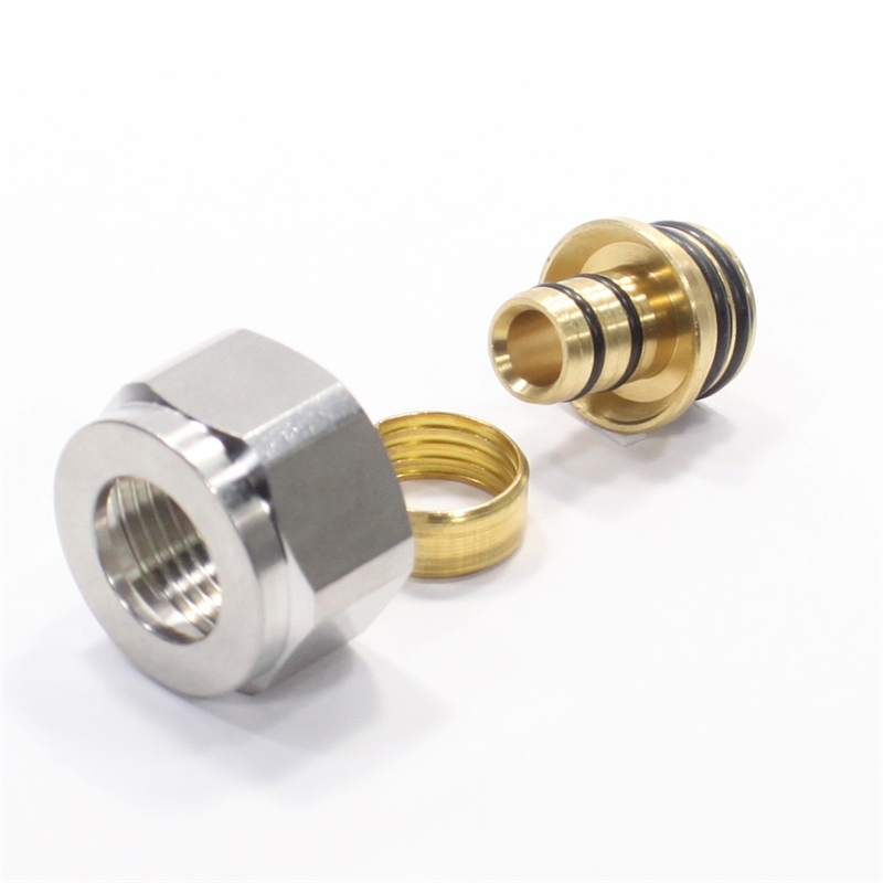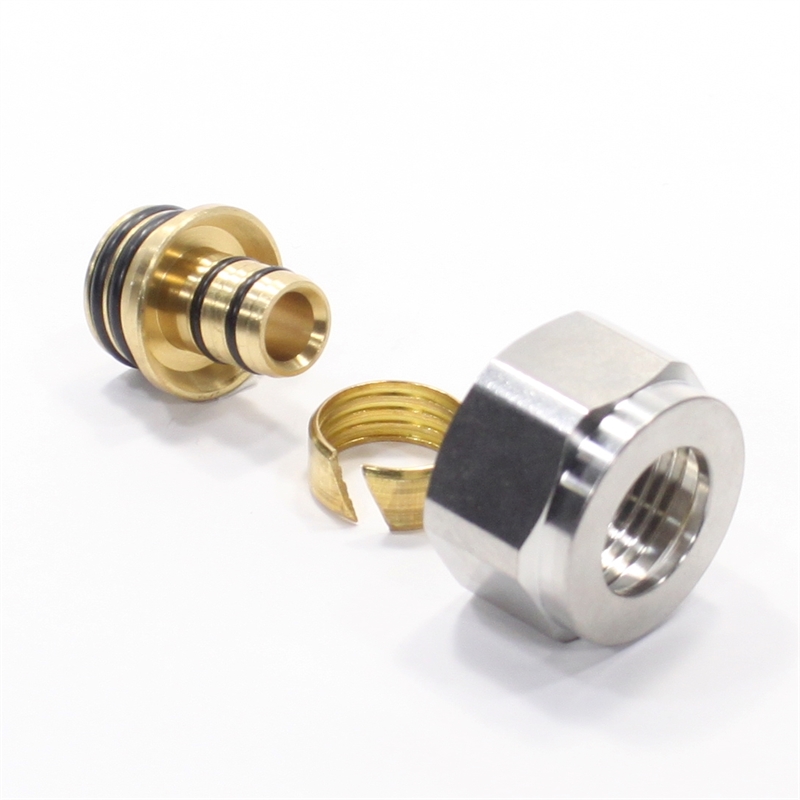 Резьбозажимное Flex-X изготавливается из покрытой латуни. Внутренняя резьба трубная цилиндрическая G3/4' Евроконус. Для присоединения труб PE-Xa 16х2,0, 10 бар к радиаторным узлам и коллекторам с наружной резьбой 3/4'.