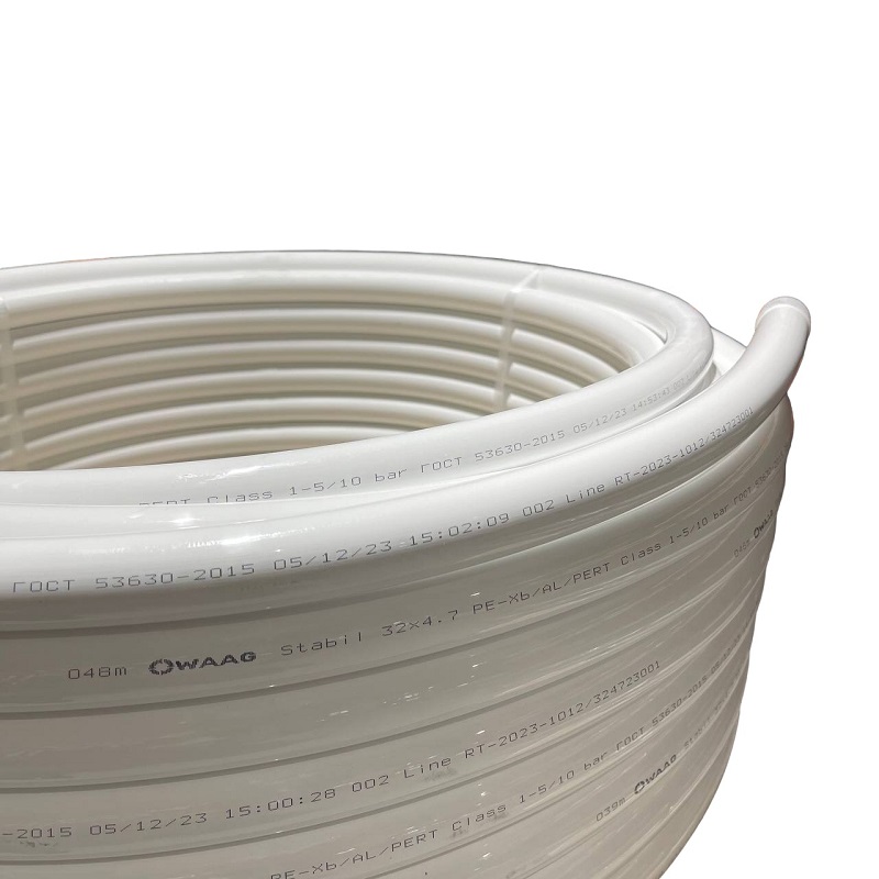 Универсальная труба WAAG stabil PEX-b/AL/PE-RT с самонесущим слоем из поперечно сшитого полиэтилена, в стабилизирующей оболочке из алюминия с защитным покрытием из термостойкого полиэтилена, представляет собой идеальное сочетание свойств сшитого полиэтилена с высокой механической прочностью и алюминия с высокой гибкостью.